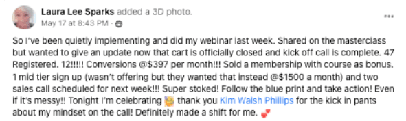 Feeling "stuck" is the absolute worst, am I right? In Inner Circle Mastermind, you have direct access to Kim Walsh Phillips with your own personal Voice line. Plus, you'll have all of the support you need to move ahead no matter your pace (all tortoises and hares are welcome!) You'll be assigned a Power Circle to personally guide you and have access to a members-only Facebook group staffed by paid coaches, ready to answer your questions 24/7, bi-monthly coaching calls with easy buttons for your marketing, sales, Facebook Ad and technology, and open Q&A calls to rapid success.